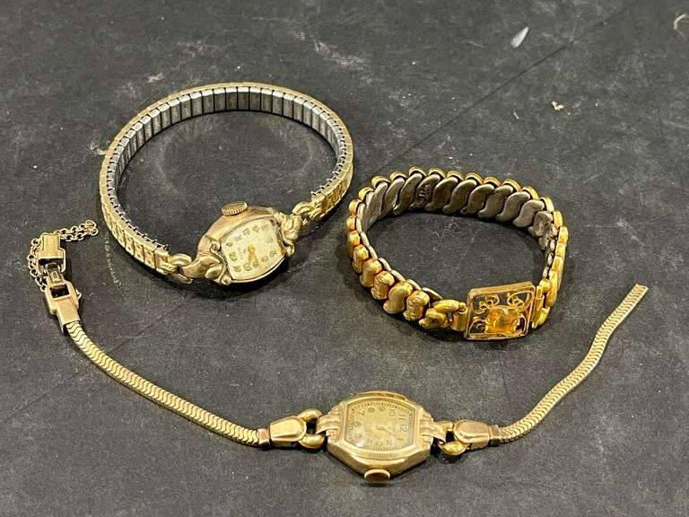LOT 172 - VTG Signed Gold Tone Child’s Bracelet & (2) VTG Ladies Watches: 10K Rolled Gold