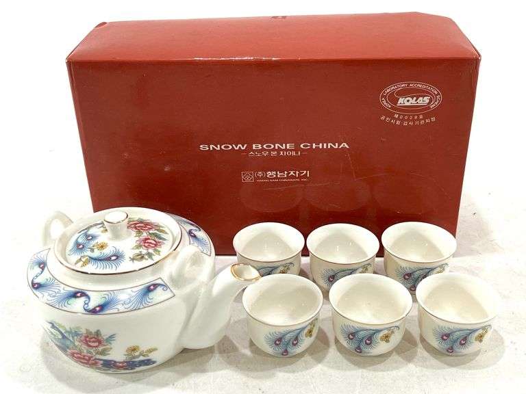 LOT 2070 - NOLAS Snow Bone China Peacock Tea / Sake Set