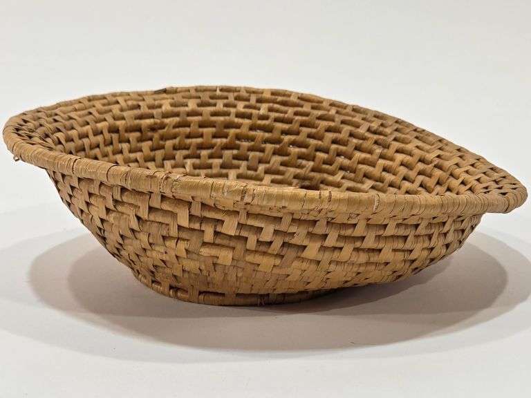 This Native American style hand made woven basket is in good condition, free of damage, but it is a little misshapen