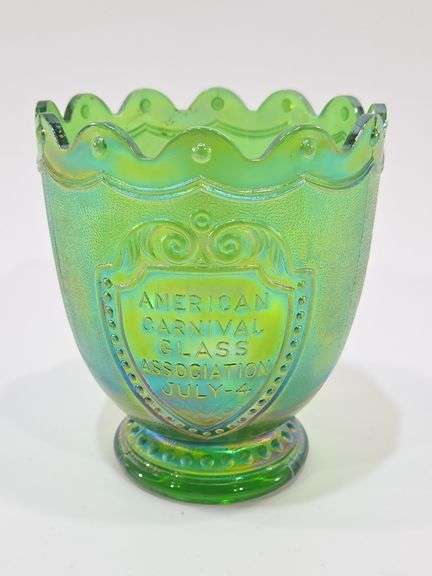LOT 1098 - VTG 1970 American July 4 Indianapolis Commemorative Green Carnival Glass