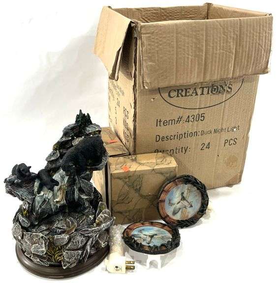 LOT 2001 - Black Bear Water Fountain Display w/ (19) Mallard Duck Night Lights